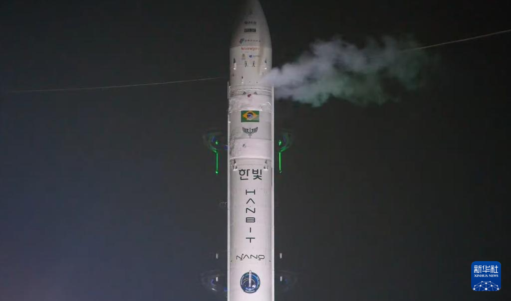 这是当地时间12月22日晚在巴西拍摄的韩国商业运载火箭发射后的视频截图。