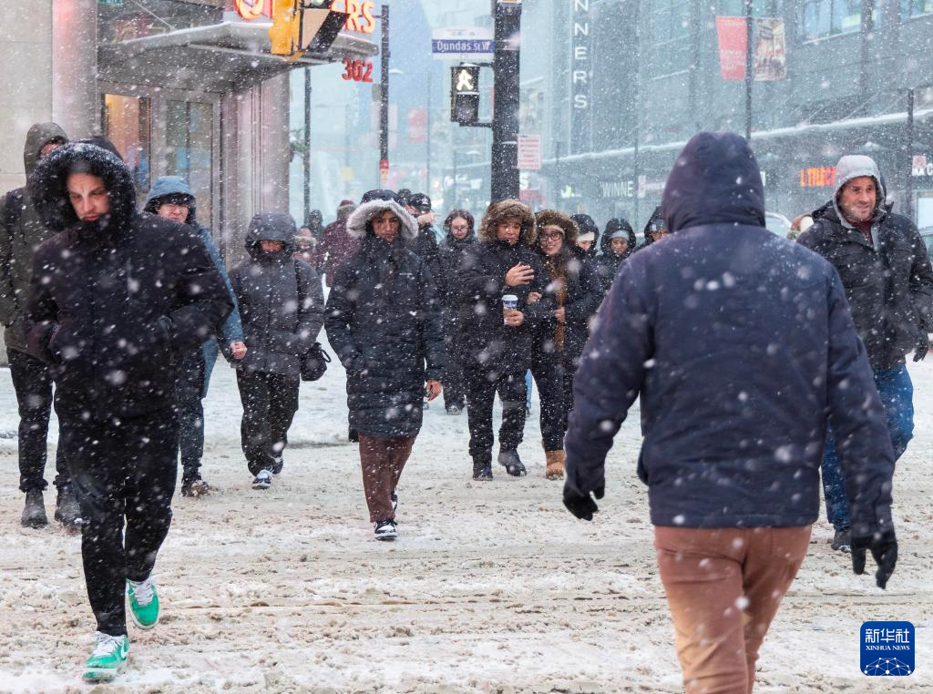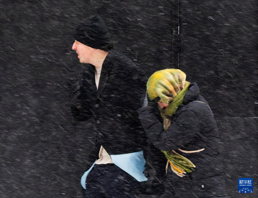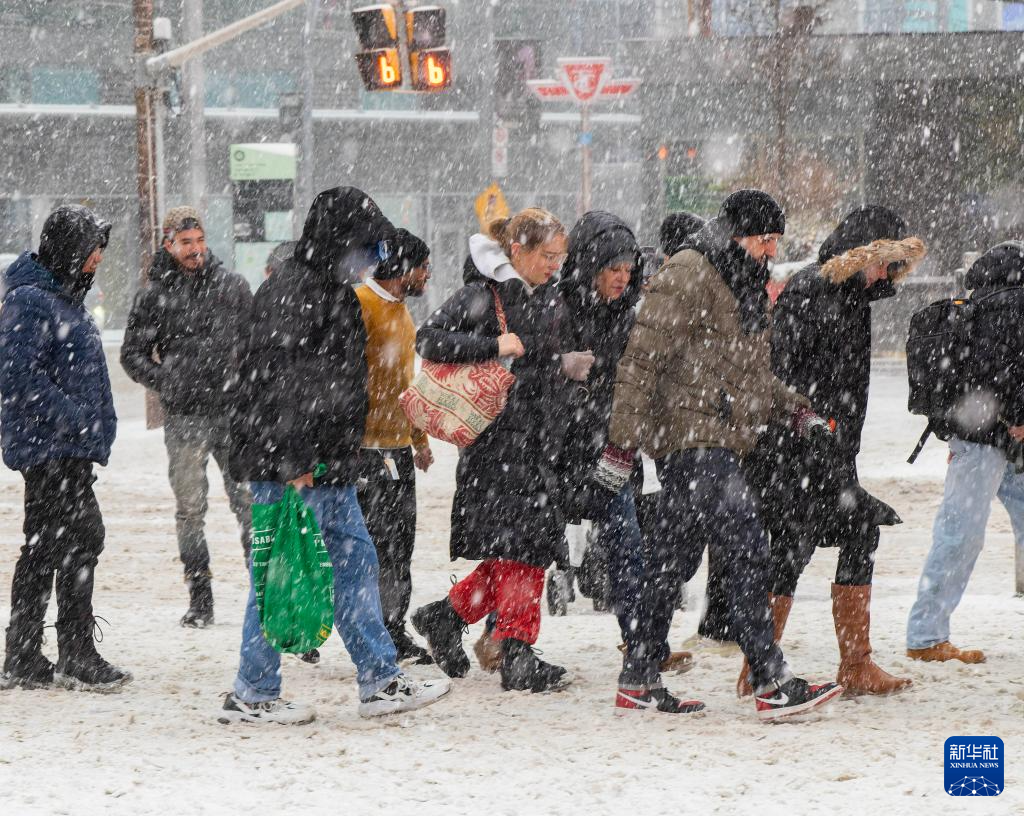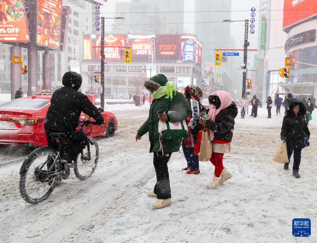 12月26日,在加拿大多伦多,人们在风雪中出行。