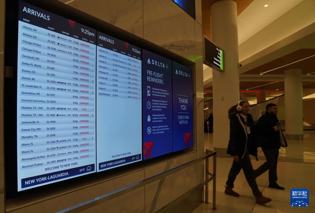 这是12月26日在美国纽约拉瓜迪亚机场拍摄的航班信息显示屏。