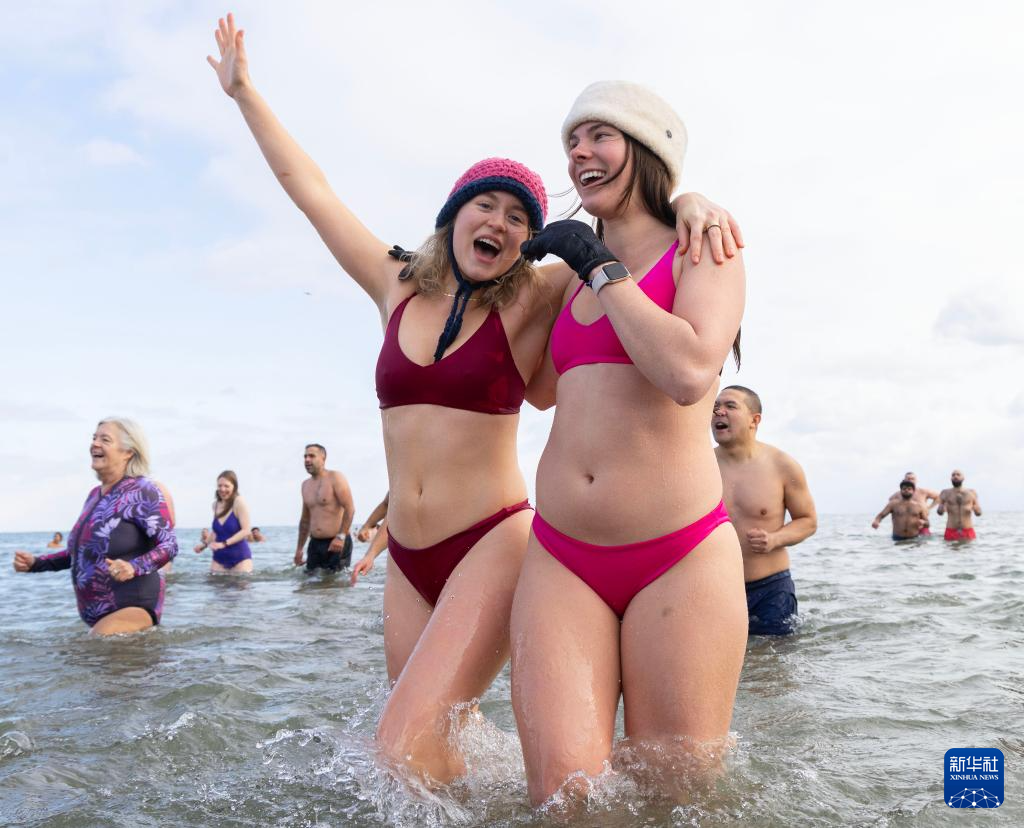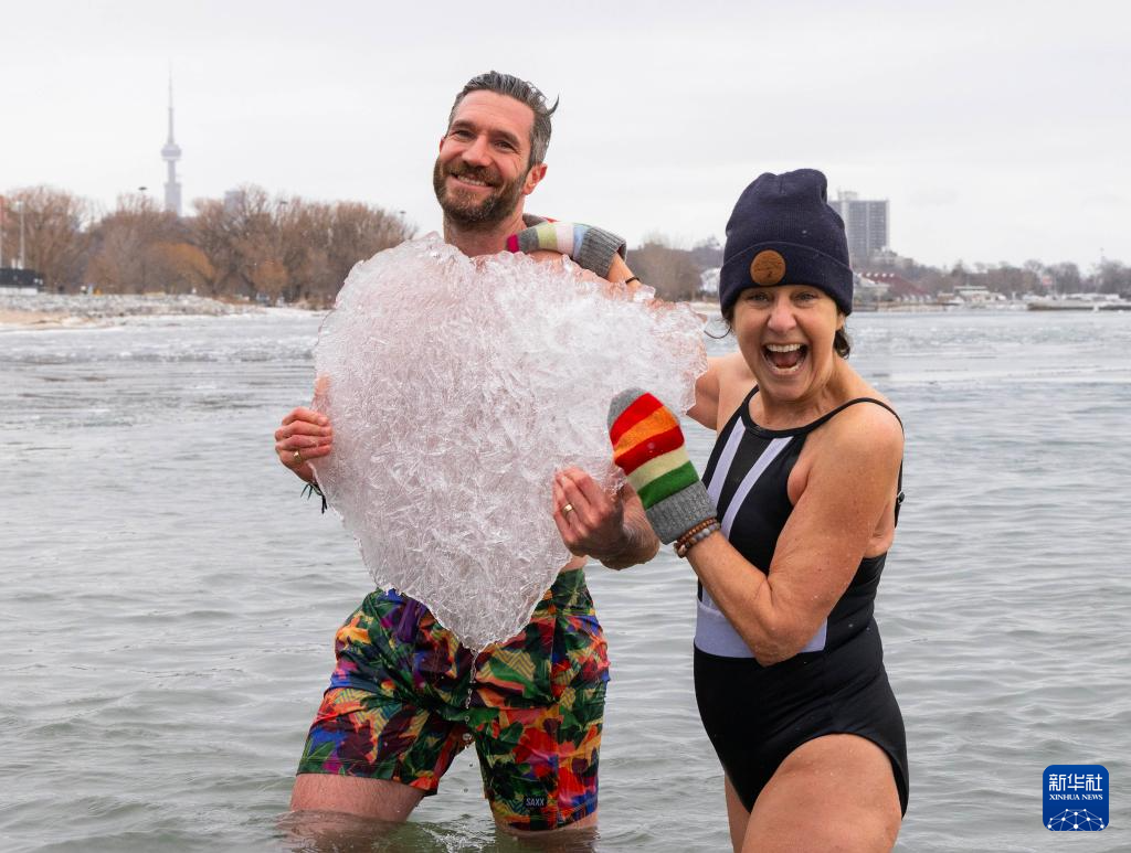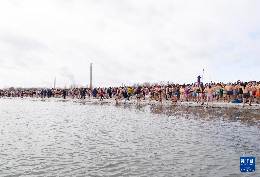 2026年1月1日,人们在加拿大多伦多的安大略湖边参加“北极熊冬泳”活动,欢庆新年。