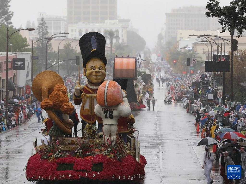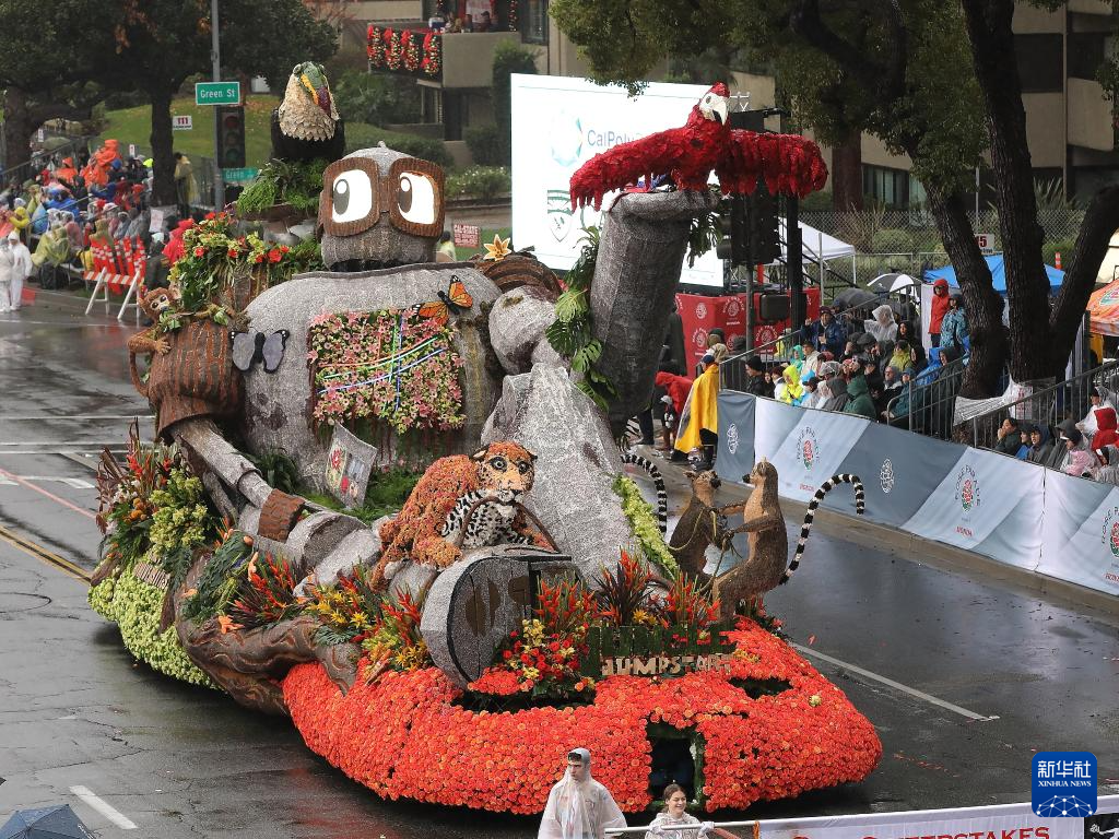 2026年1月1日,在美国加利福尼亚州洛杉矶县帕萨迪纳市,一辆花车参加第137届新年玫瑰花车游行。
