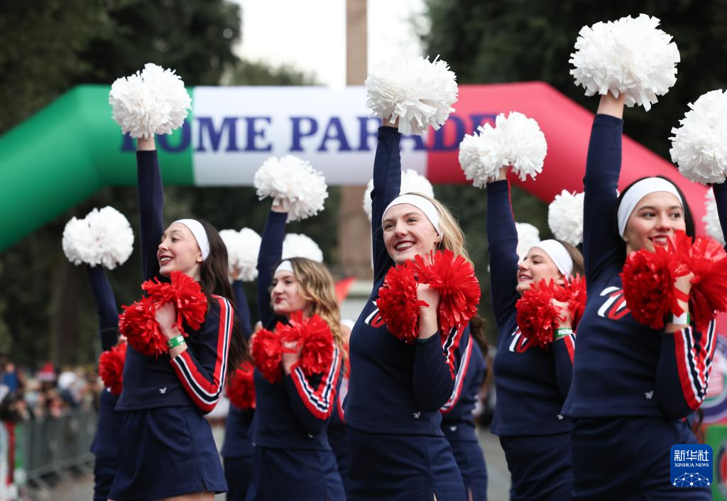 2026年1月1日,在意大利罗马,拉拉队队员在新年游行庆祝活动中表演。
