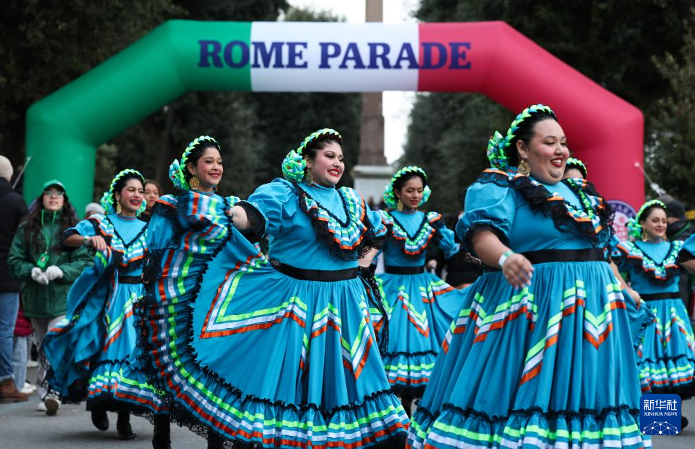2026年1月1日,在意大利罗马,演员在新年游行庆祝活动中表演墨西哥舞蹈。