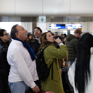 1月4日,人们在希腊雅典的机场内查看航班信息。