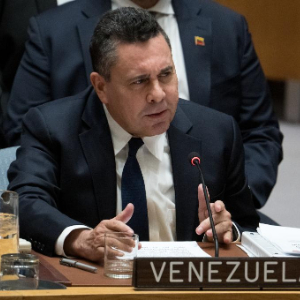1月5日,委内瑞拉常驻联合国代表萨穆埃尔·蒙卡达在位于纽约的联合国总部举行的安理会委内瑞拉局势紧急会议上发言。