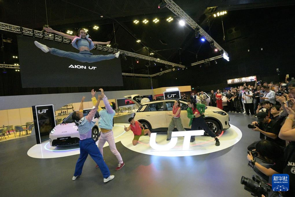 1月8日,在2026年新加坡汽车展上,表演者在中国品牌汽车展台表演舞蹈。