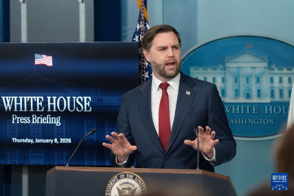 1月8日,在美国首都华盛顿白宫,美国副总统万斯回答记者提问。