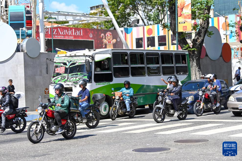 1月8日,机动车行驶在委内瑞拉首都加拉加斯的街道上。