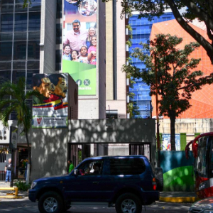 1月8日,在委内瑞拉首都加拉加斯,委内瑞拉国旗悬挂在公寓楼外。