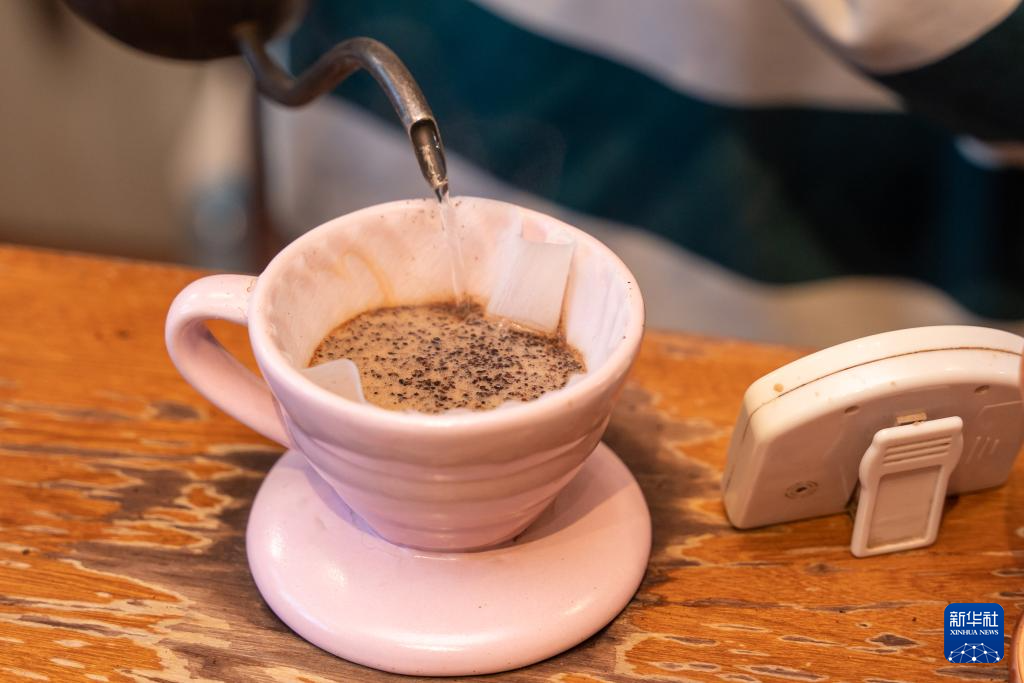 咖啡师在老挝首都万象一家咖啡店制作咖啡(2025年12月22日摄)。