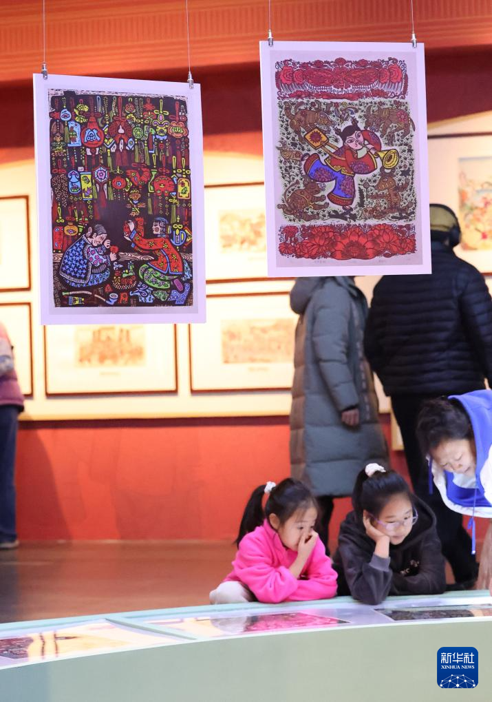 1月16日,一名小女孩在辽宁省博物馆观看展出的年画作品。