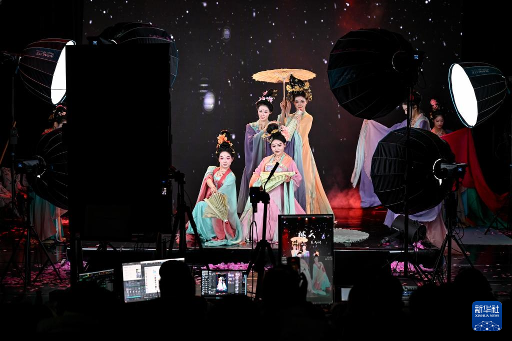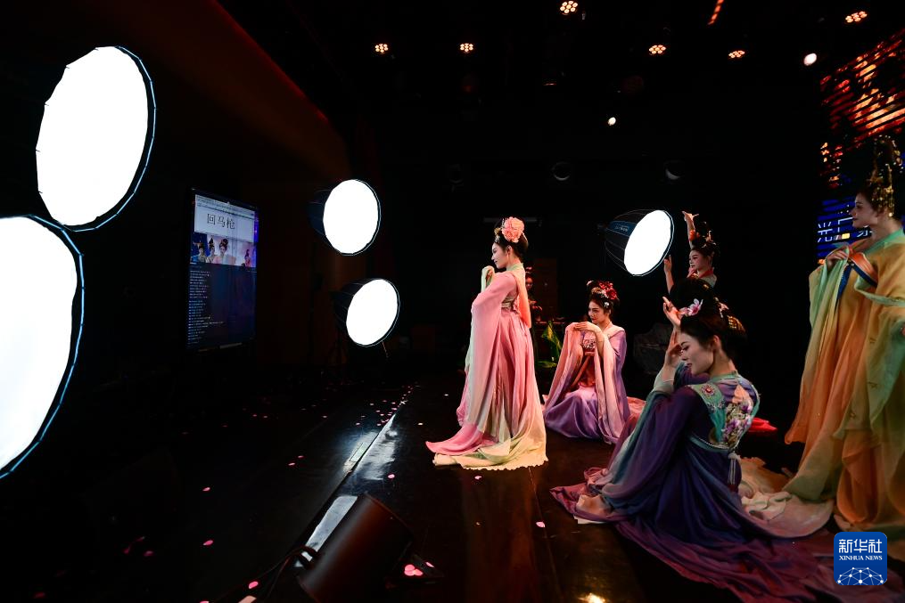 直播间的灯光亮起,舞蹈演员身着仿唐服饰,伴着国风乐曲翩然入镜,屏幕中的评论区实时滚动。在陕西省歌舞剧院,“团播”这一多人演艺直播新形式,正成为专业文艺院团开辟线上“第二舞台”、推动传统文化创新表达的新尝试。