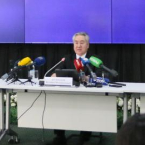 1月15日,在吉尔吉斯斯坦比什凯克,库鲁巴耶夫出席年度记者会。