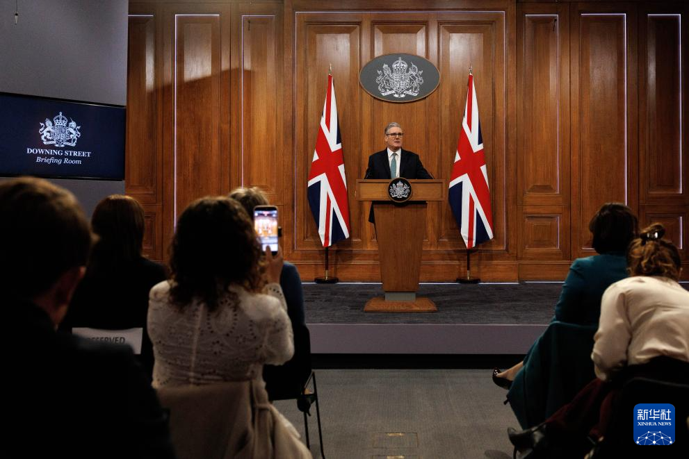 1月19日,英国首相斯塔默在伦敦举行的新闻发布会上讲话。