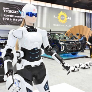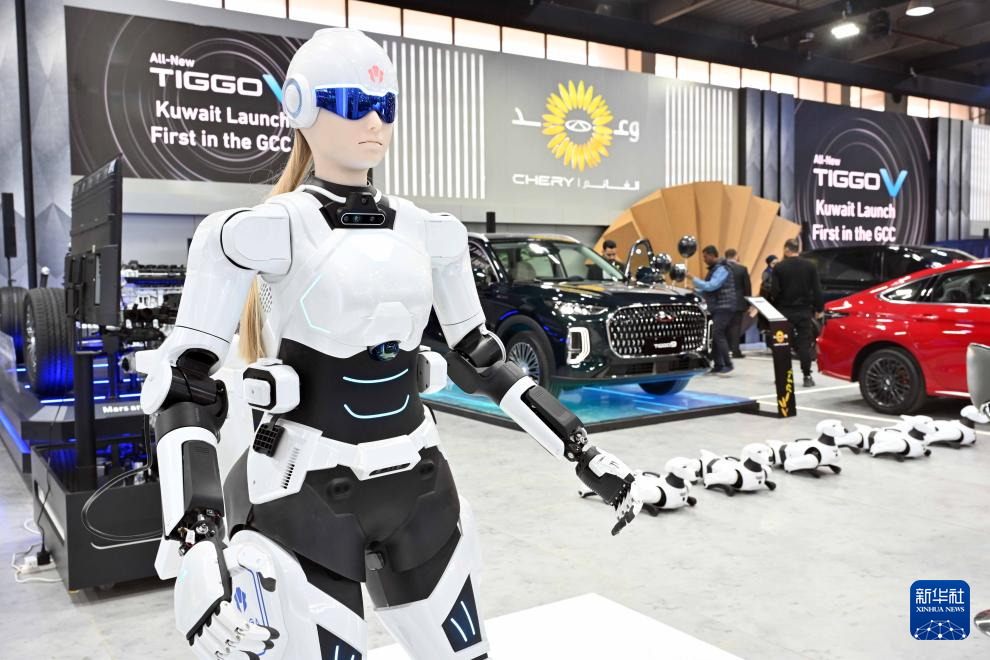 1月19日,在科威特哈瓦利省,奇瑞展台展出机器人和机器狗。
