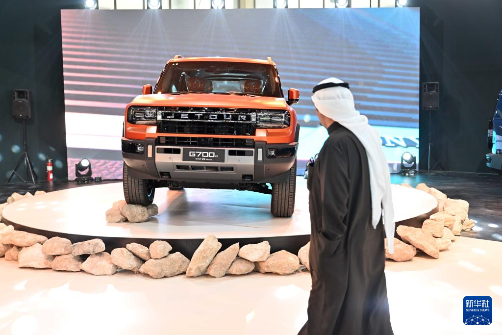 1月19日,在科威特哈瓦利省,一名男子观看捷途G700汽车。