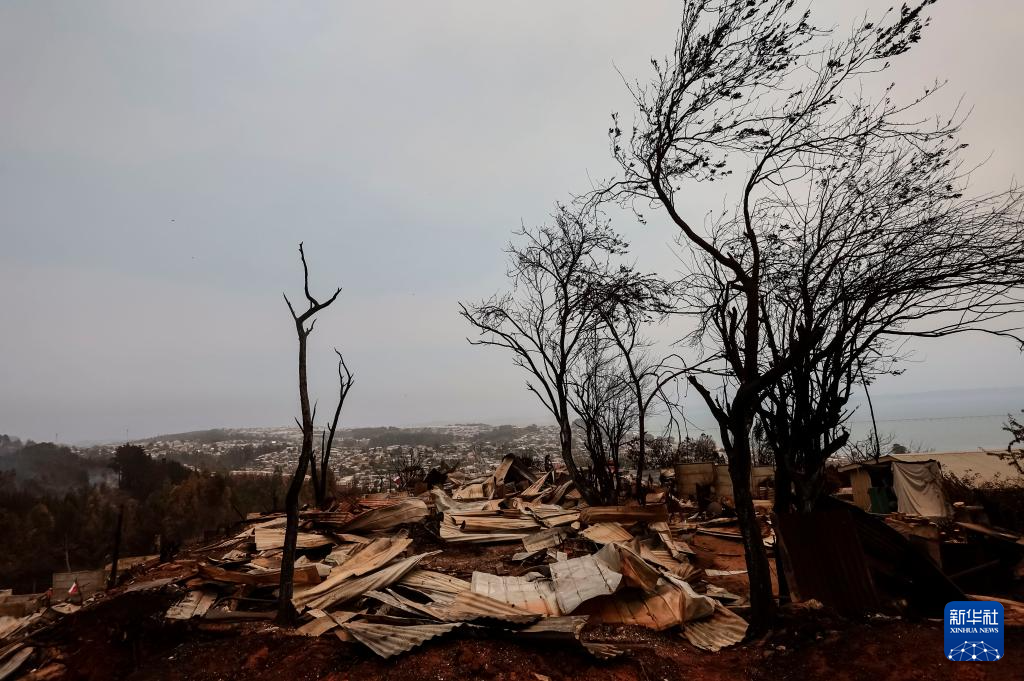 这是1月19日在智利比奥比奥大区彭科市拍摄的火灾受灾区域。