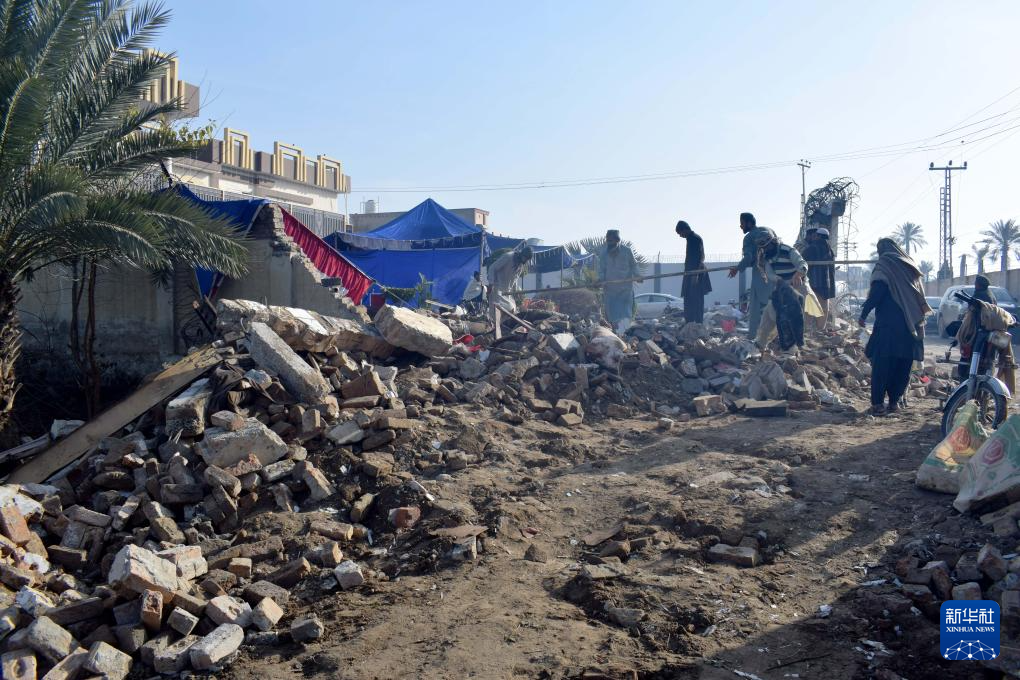 1月24日,在巴基斯坦西北部开伯尔-普什图省德拉伊斯梅尔汗地区,人们检查爆炸现场。