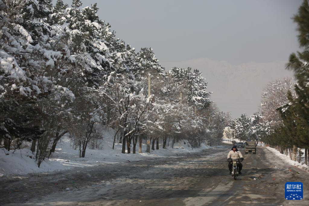 这是1月25日拍摄的雪后的阿富汗首都喀布尔街头。