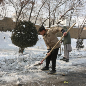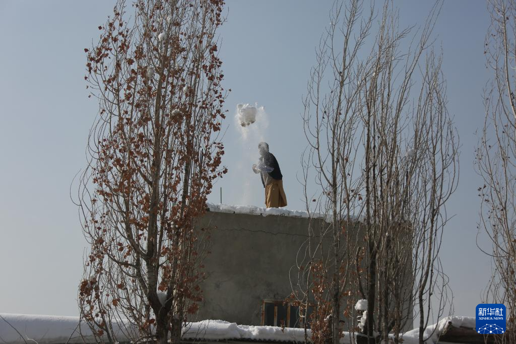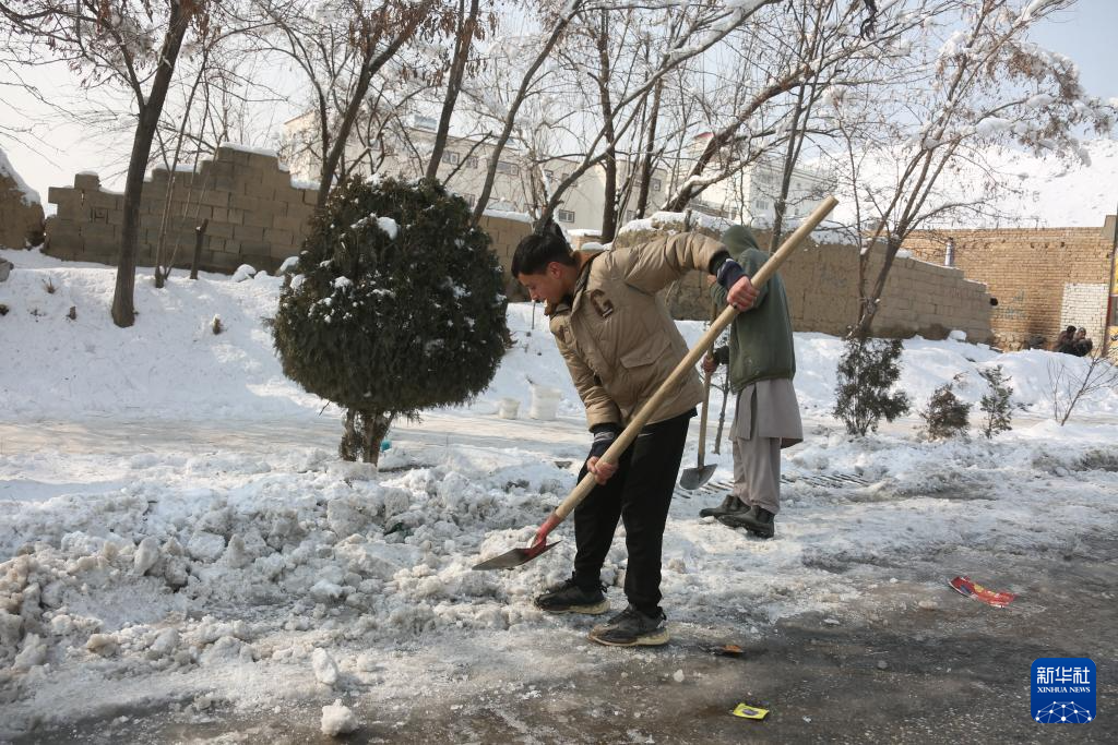 1月25日,当地居民在阿富汗首都喀布尔清理积雪。