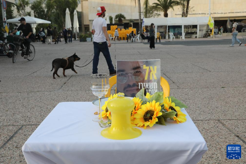 这是1月26日在以色列特拉维夫一处广场拍摄的被扣押人员拉恩·格维利的海报。