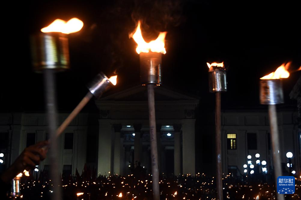 古巴民众27日晚在首都哈瓦那举行传统火把游行,谴责美国霸权主义和对外侵略行径,强调反帝国主义立场。