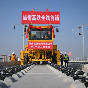 据悉,雄忻高铁是我国“八纵八横”高速铁路网京昆通道的重要组成部分,线路东起雄安站,终至忻州西站,正线全长约342公里,设计时速350公里。雄忻高铁铺轨施工横跨河北、山西两省,铺轨施工全长716公里,需铺设道岔147组。按照施工计划,自2月1日起,首先启动雄忻高铁河北段铺轨作业,后续再开展山西段等铺轨施工。