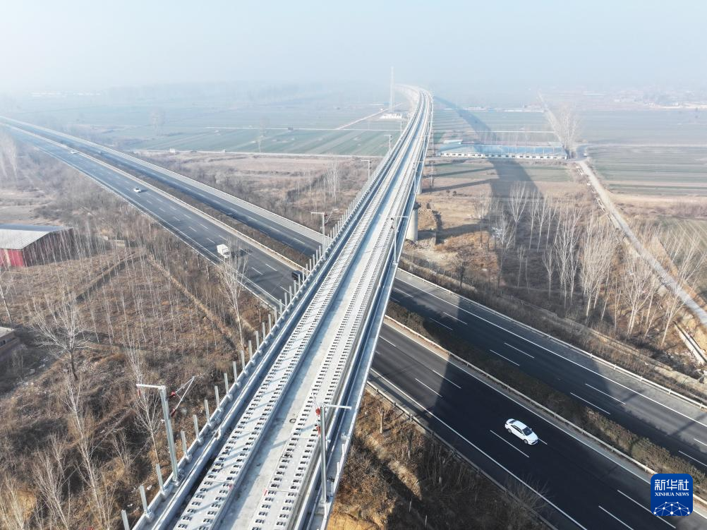 这是雄忻高铁跨京昆高速立交桥(2月1日摄,无人机照片)。