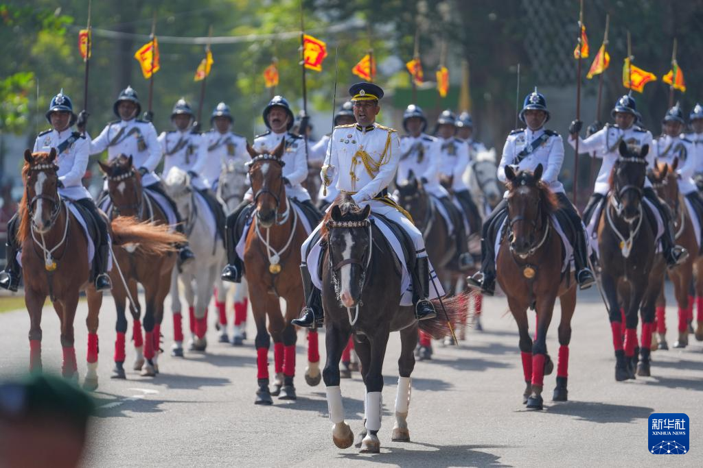 2月4日,在斯里兰卡首都科伦坡,斯里兰卡总统迪萨纳亚克(中)出席独立日庆祝活动。