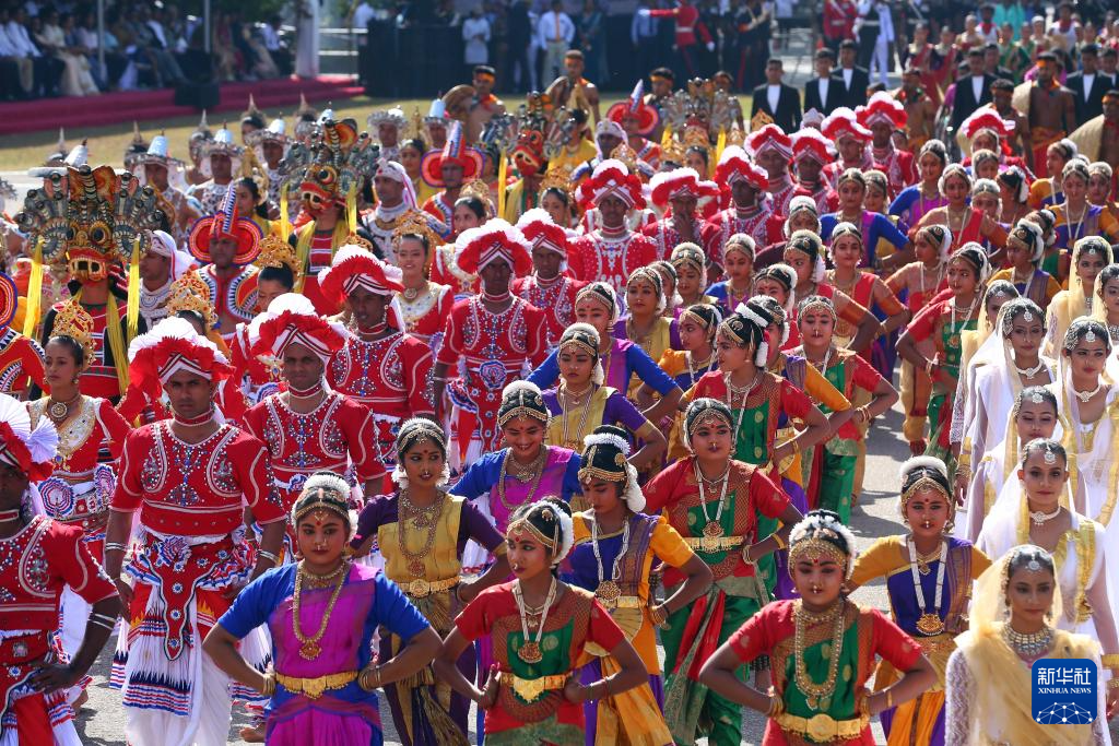 2月4日,在斯里兰卡首都科伦坡,人们参加独立日庆祝活动。
