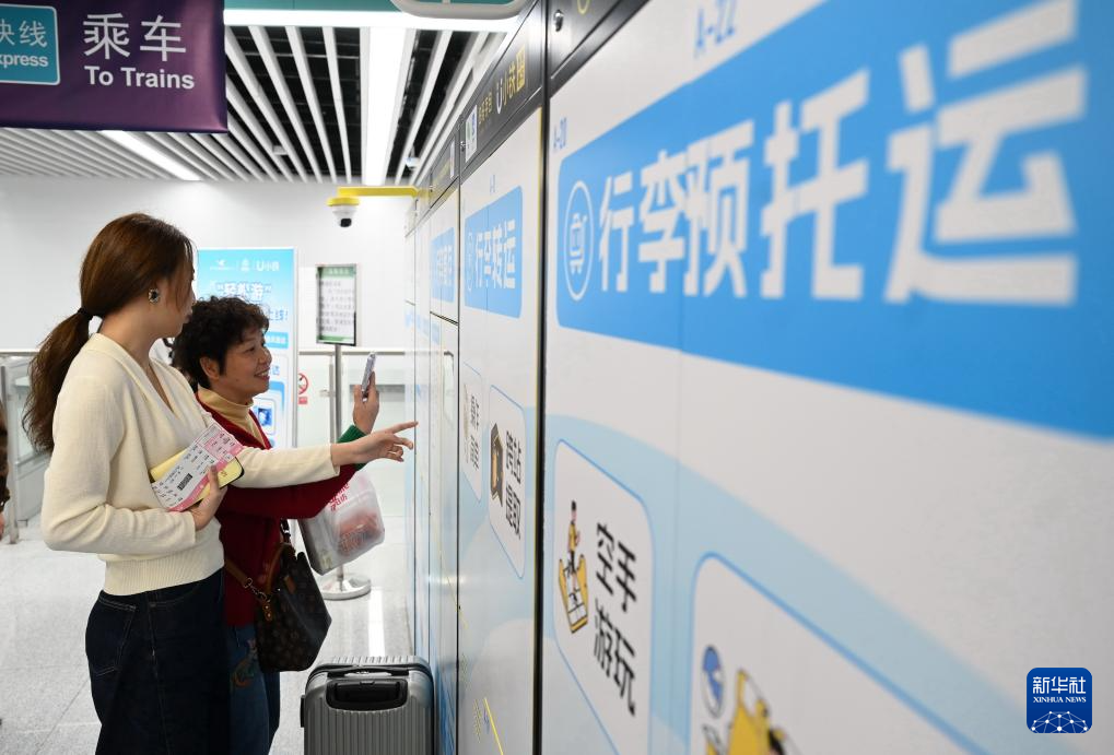2月6日,在滨海快线福州火车站的厦门航空福州空轨联运城市服务中心,旅客办理行李寄送。