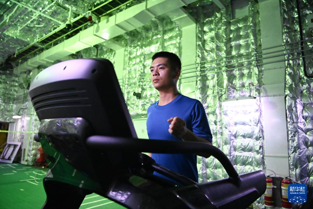 2月11日,中国海警万山舰执法员王弘在休息时间锻炼身体。