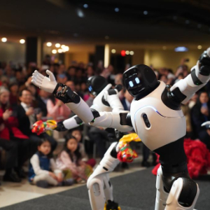 2月12日,在位于纽约的联合国总部,智能机器人在晚会上表演舞蹈。