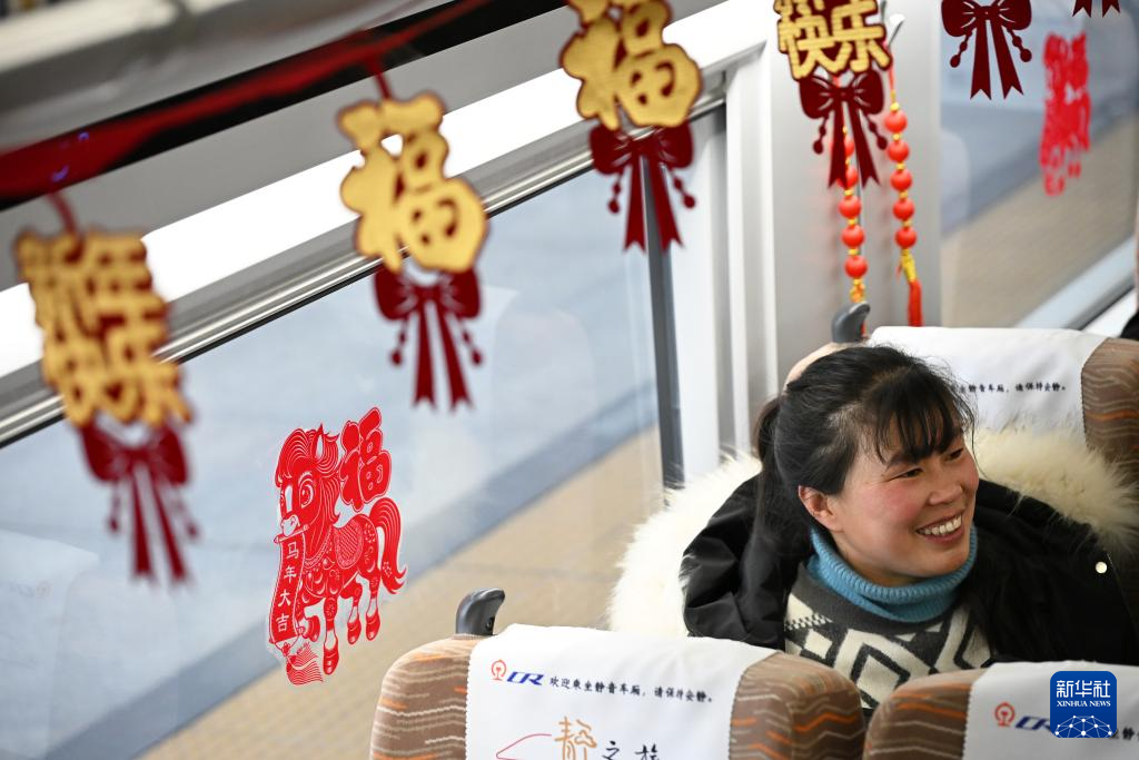 2月10日,来自四川乐山的务工人员黄小容乘坐D1925次免费爱心专列返乡。