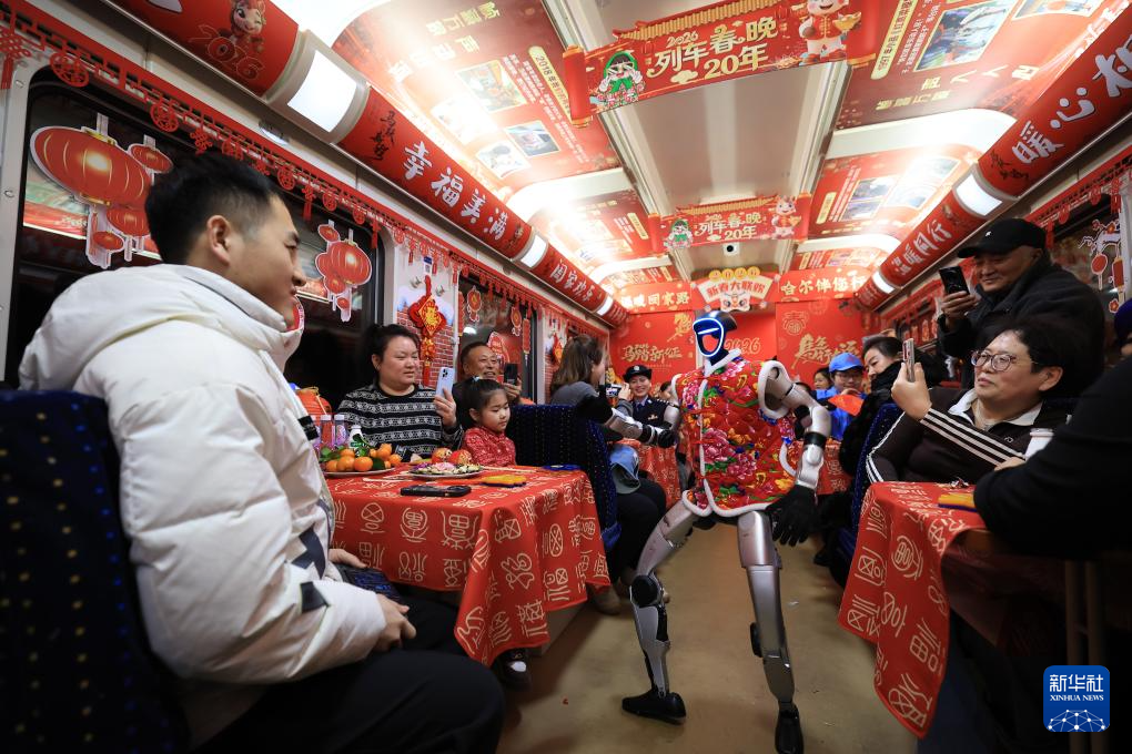 2月13日,在黑龙江齐齐哈尔开往北京的T48次列车上,哈尔滨铁路部门连续二十年举办的列车“春晚”如约而至。在多样的节目中,两个仿生机器人成为全场焦点,旅客沉浸在列车“春晚”温馨氛围的同时,也感受到了年味中满满的科技感。