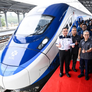 中国交通建设集团有限公司承建的马来西亚东海岸铁路(马东铁)项目首批动车组2月11日在马来西亚彭亨州州府车站苏丹阿末沙城站正式亮相。