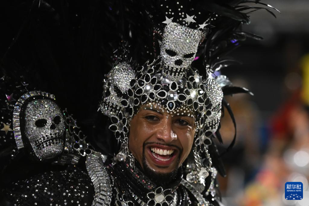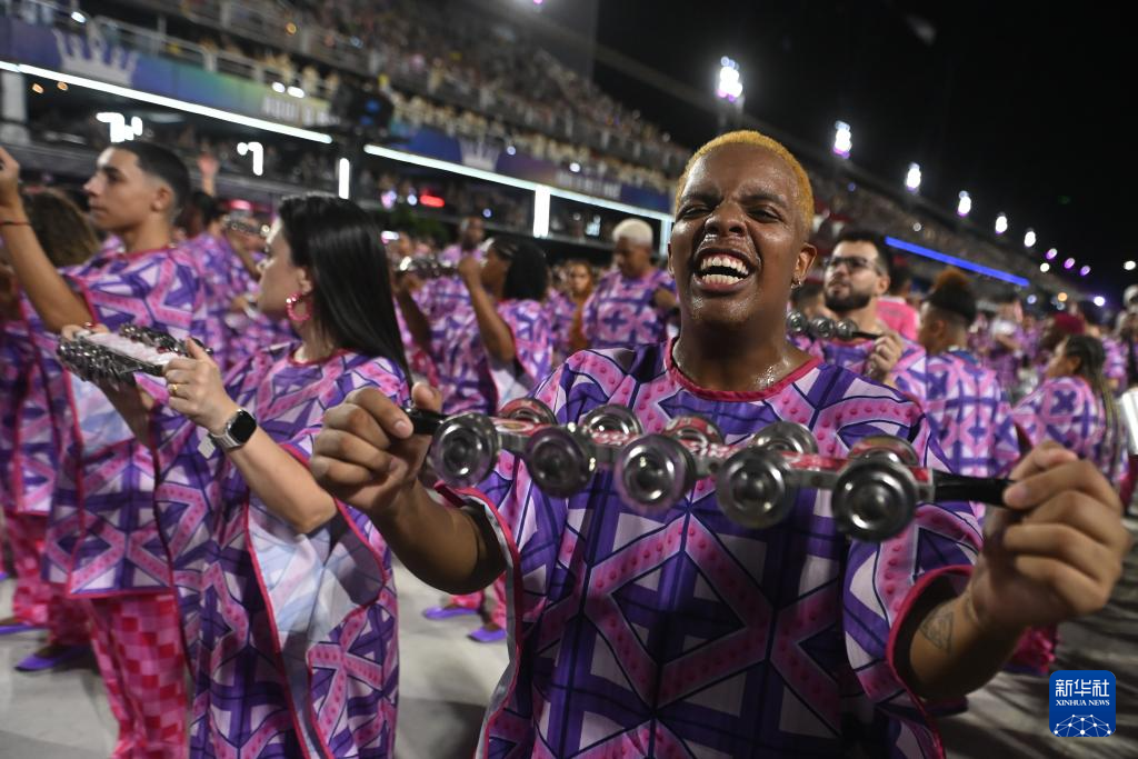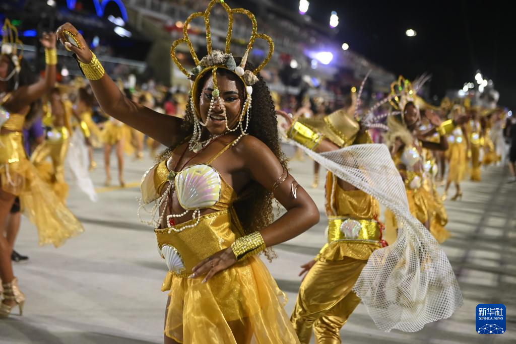 2月13日,桑巴舞者在巴西里约热内卢举行的2026年狂欢节游行中表演。