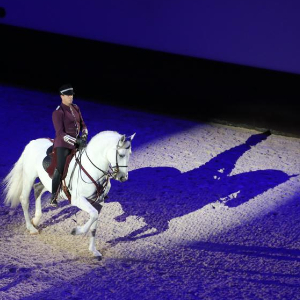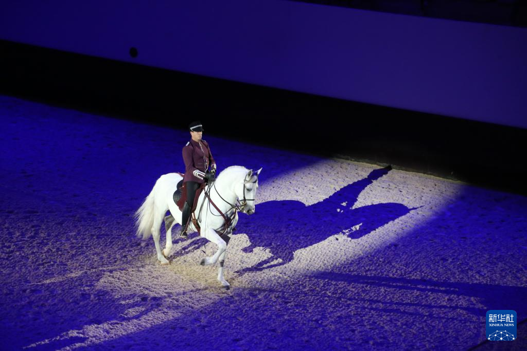 2月14日,在阿联酋首都阿布扎比,马术师在马年春节主题活动上表演。