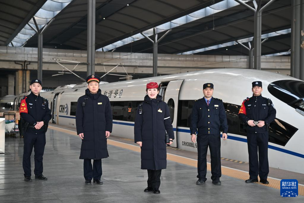 在天津西站往返厦门北站的G679/680次列车上,列车长张楠,列车员刘俊钦、仝苗苗、张映雪、张瀚予、邵丰雪,铁路公安乘警潘振东、马键,随车机械师王彬……这些来自不同岗位的人,共同组成了这列往返南北,运行里程1952公里高铁列车上的基层班组。他们随列车南来北往,护送万千乡愁抵达团圆。