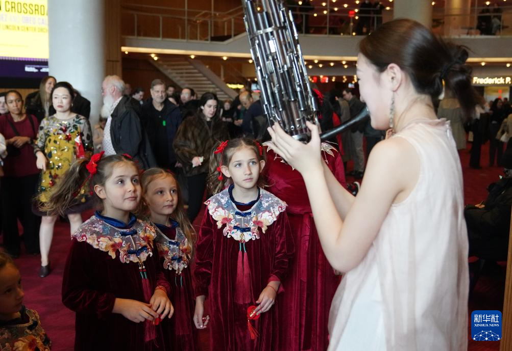 2月15日,在美国纽约举行的“春之声”中国新年音乐会的传统乐器演示环节,小朋友们观看中国乐器演示。