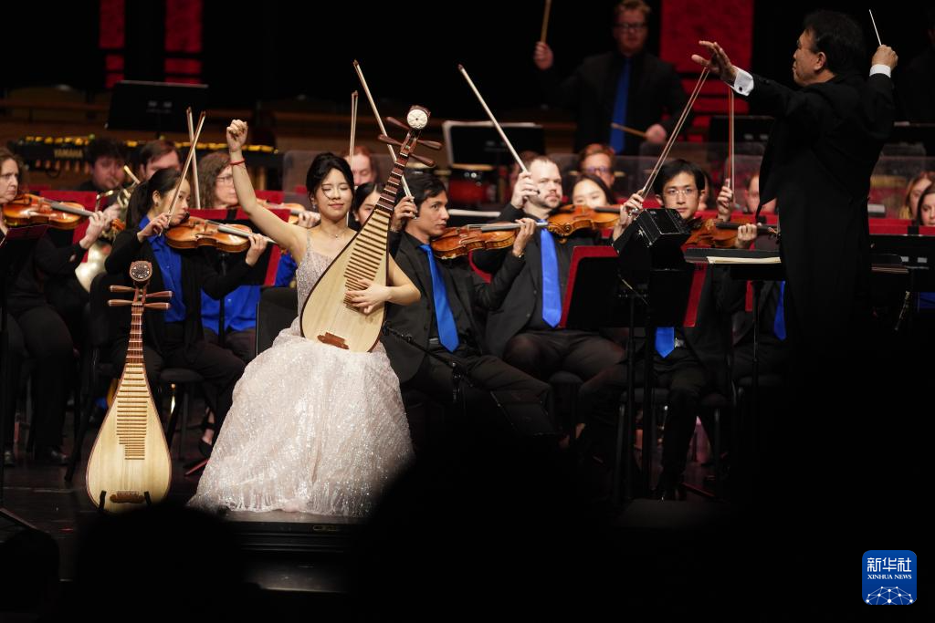 2月15日,在美国纽约举行的“春之声”中国新年音乐会上,表演者演奏《云想·花想》琵琶协奏曲。