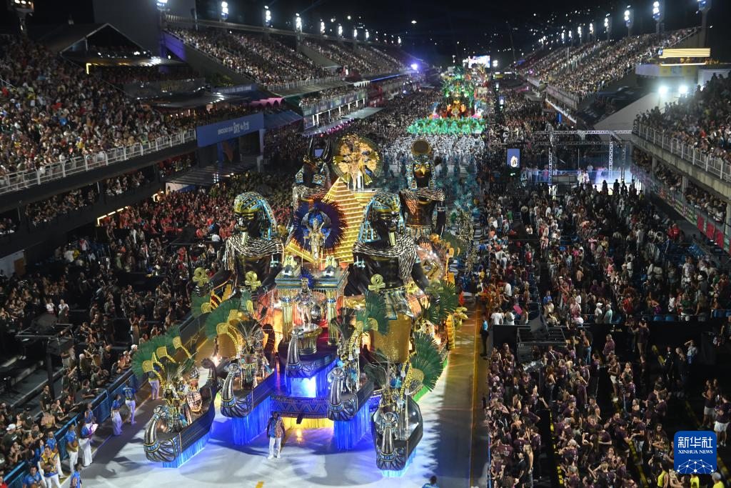 这是2月17日晚拍摄的2026年巴西里约热内卢狂欢节游行现场。