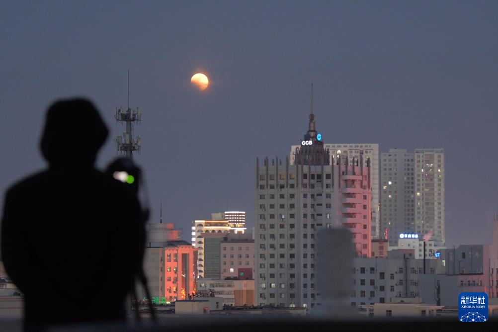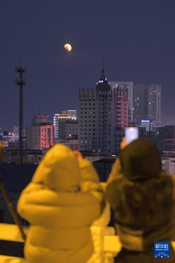 3月3日,在黑龙江省齐齐哈尔市,市民在拍摄月全食。