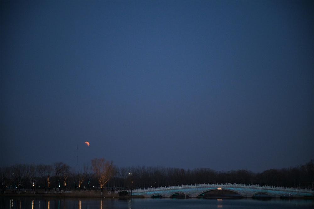 这是3月3日在北京北海公园拍摄的月全食。