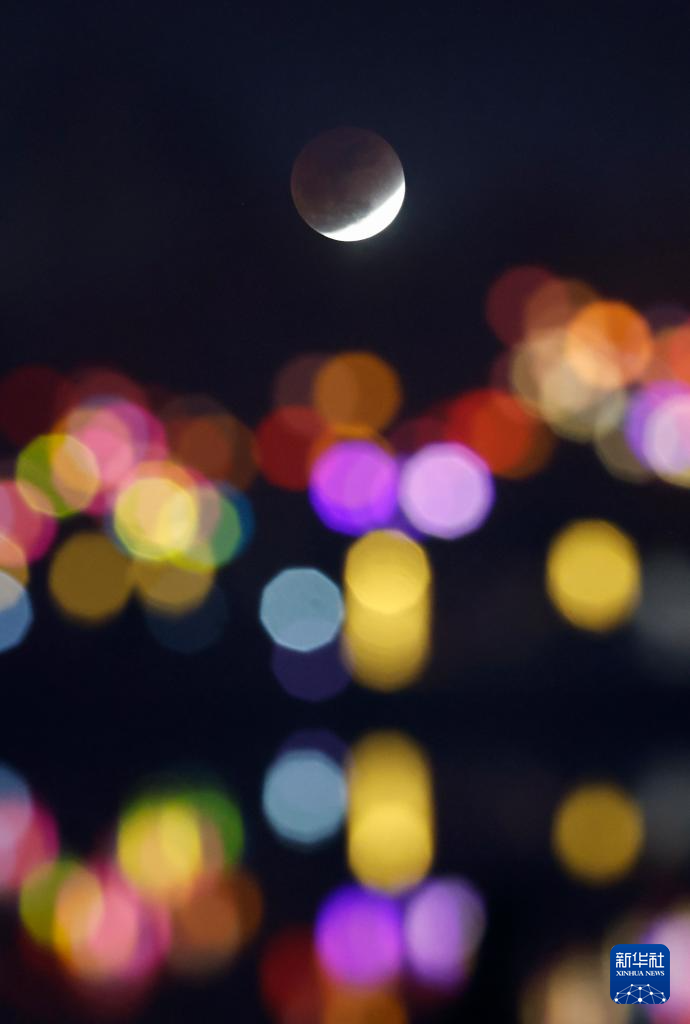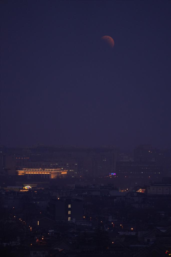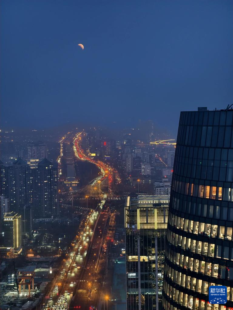 这是3月3日从北京国金大厦拍摄的月全食。