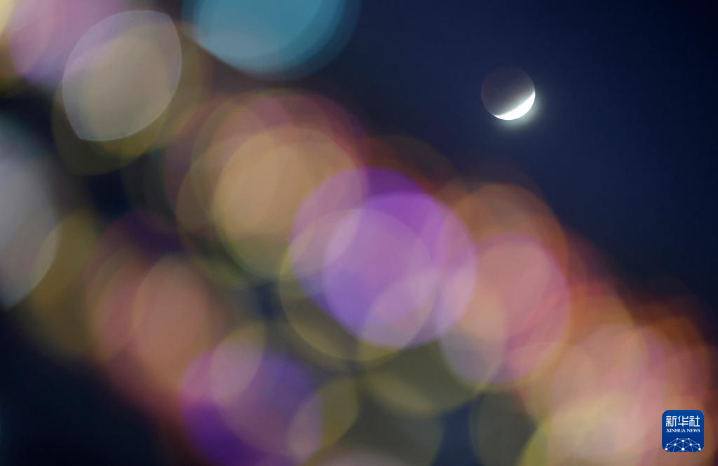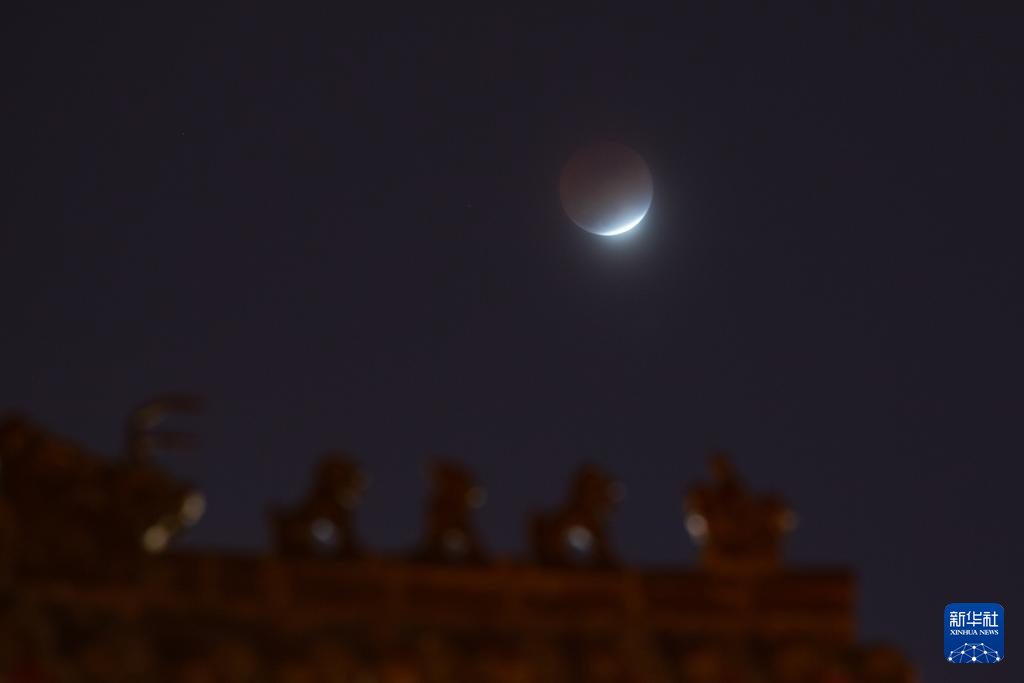 这是3月3日在北京国金大厦拍摄的月全食的生光阶段。