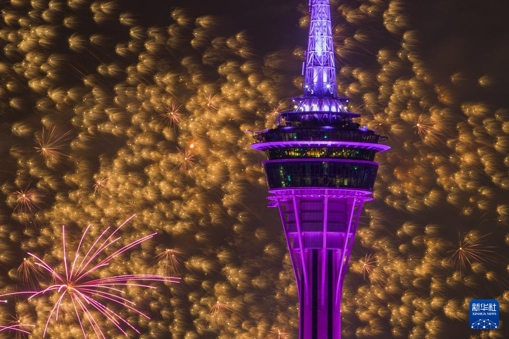 3月7日,澳门旅游局在澳门旅游塔对出海面举行“金骏云翔 欢乐春节”2026无人机烟花汇演第三场。