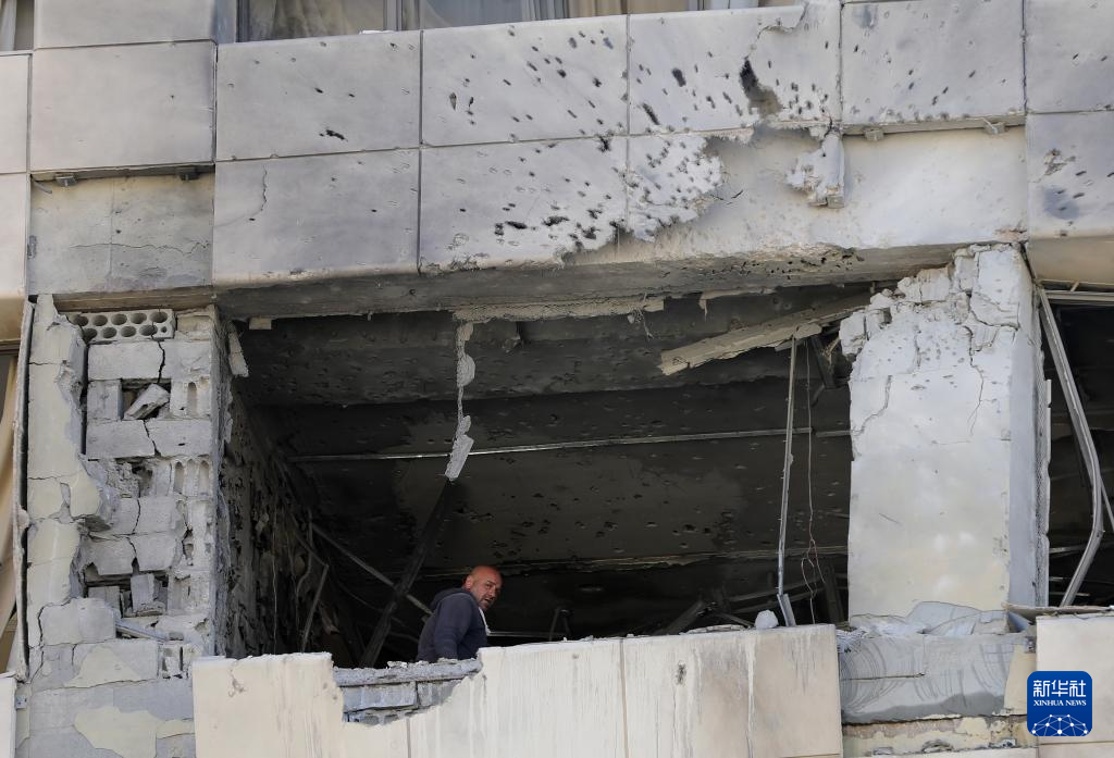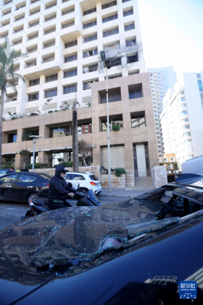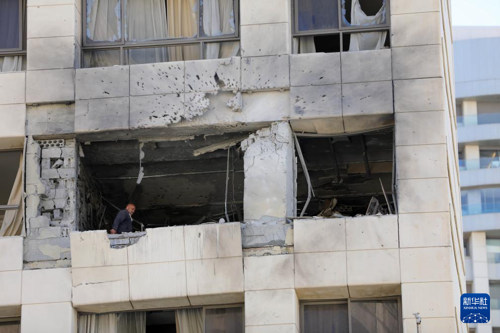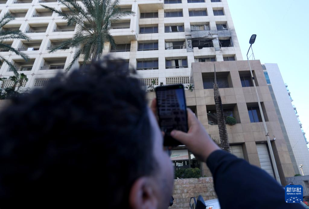 这是3月8日在黎巴嫩首都贝鲁特拍摄的遇袭酒店。