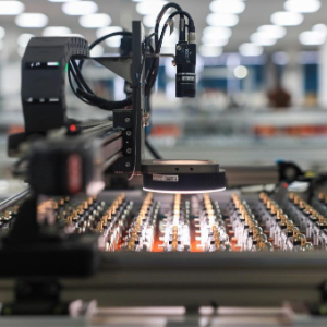 3月16日,在江苏省靖江市西来镇的江苏沙龙机电科技有限公司生产车间内,电子元件自动检测线正开展检测作业。