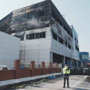 这是3月21日拍摄的韩国大田工厂火灾现场。